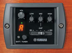 APX600のピエゾ・ピックアップシステムは独自開発の各弦独立エレメント方式によりそれぞれの音を明確に拾うことができます。一般的なアンダーサドル型ピエゾピックアップに比べ、より高い精度とレスポンスに優れたピックアップです。
