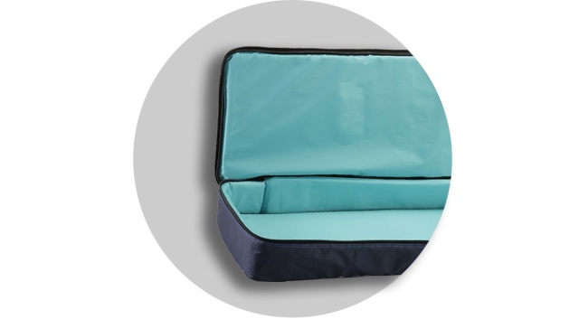 ・キーボード本体を守るための厚手のクッション・パッドを装備。鮮やかなグリーンの配色がポイントです。