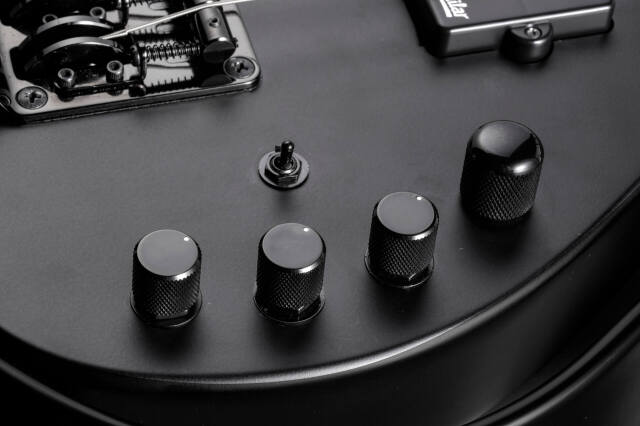 コントロールは、ヴォリューム、プリアンプ・バイパス・スイッチ、トレブル・ミッド・ベースEQ(ブースト/カット)