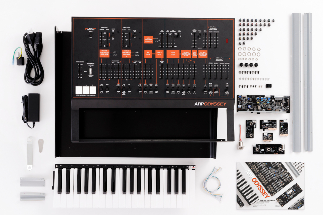 新登場のARP ODYSSEY FS Kitは、その名の通り、キットという新たな形で伝説のサウンドを手に入れることができます。組み立て方法もシンプルで、専門知識やハンダ付けの必要もなく、図解による分かりやすいガイドブックも同梱していますので、誰でも組み立てることが可能です。サウンド面においても、アナログ回路を忠実に再現しており、暖かく豊かなサウンドを実現します。また、フルサイズの鍵盤やオレンジ色の文字が入ったブラック・パネル・デザインなど、Rev.3モデルのオリジナル・スペックをすべて踏襲しています。