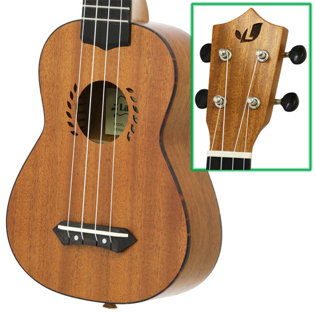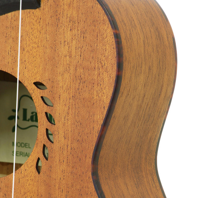 ハワイ語で“幸福、幸せ”という意味を持つラウレア。リースをイメージしてデザインされたサウンドホールが特徴です。
